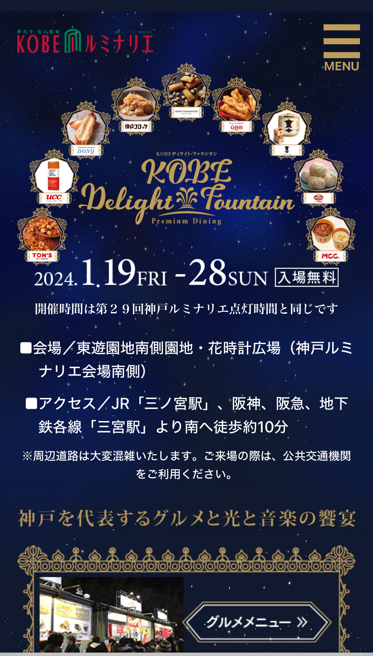 会場:東遊園地南側園地・花時計広場(神戸ルミナリエ会場南側)