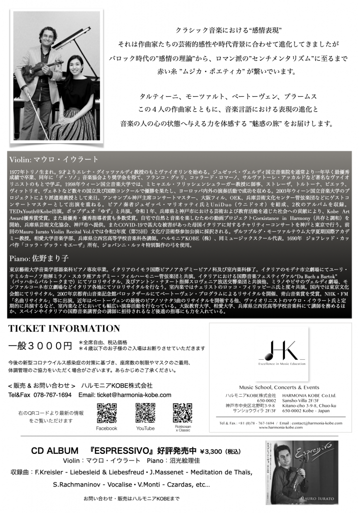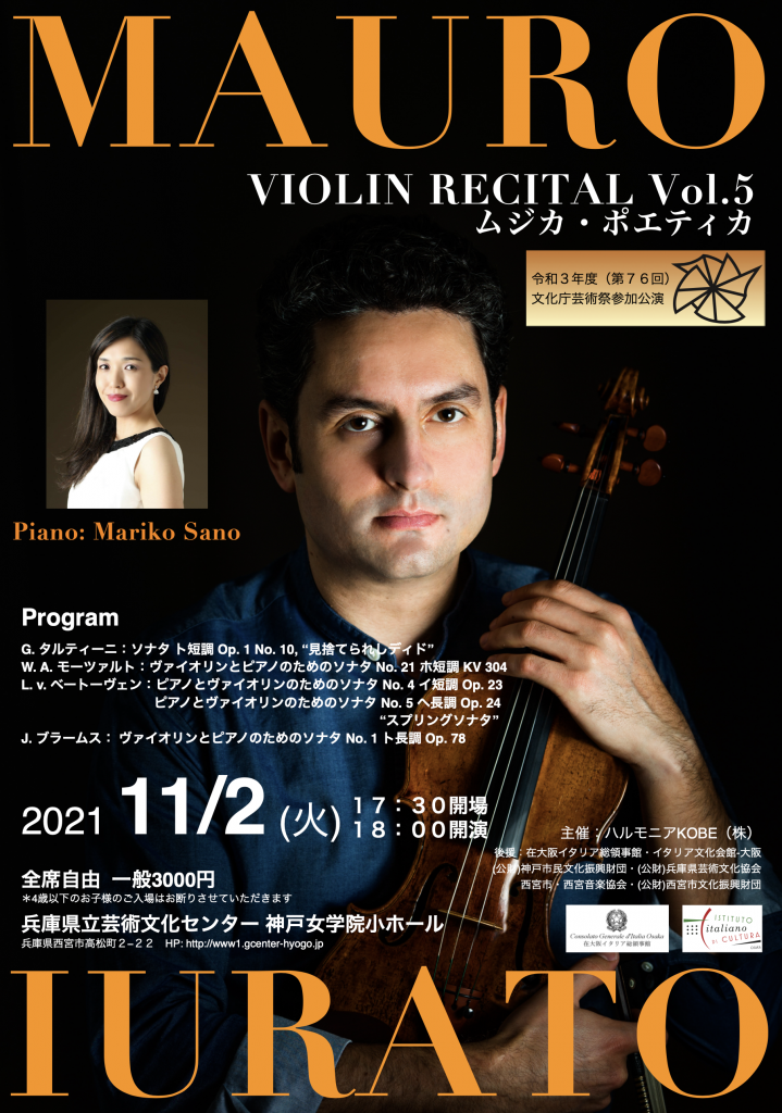 後援:在大阪イタリア総領事館、イタリア文化会館-大阪、兵庫県芸術文化協会、神戸市民文化振興財団、西宮音楽協会、西宮市、西宮市文化振興財団